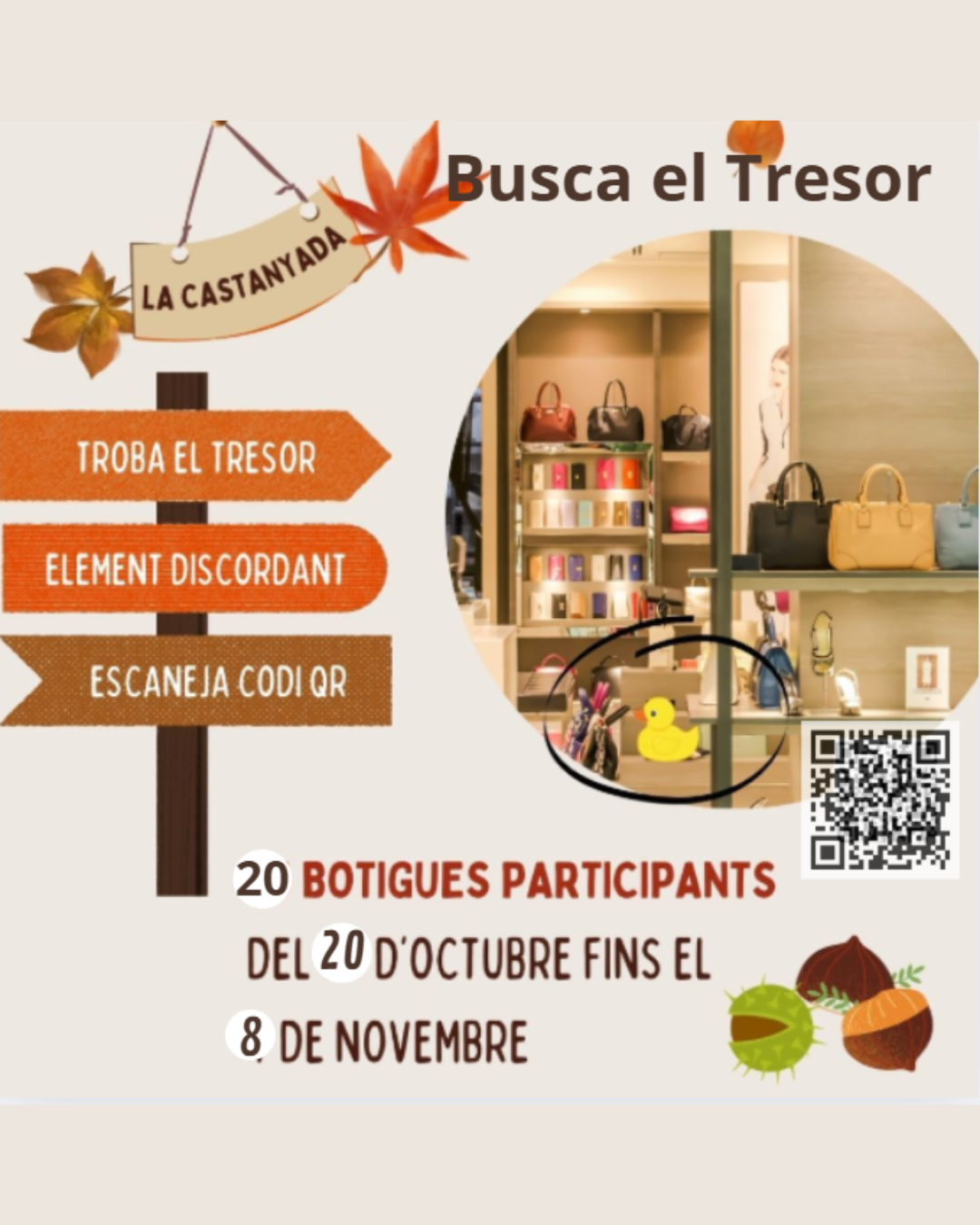Sant Cugat Comerç presenta “Busca el tresor”, una campanya lúdica i participativa que omplirà els carrers de Sant Cugat d’intriga i diversió del 20 d’octubre al 8 de novembre, coincidint amb la celebració de la Castanyada. Amb aquesta iniciativa, l’associació vol reivindicar les tradicions catalanes —celebrant la Castanyada en lloc de Halloween— i, alhora, donar visibilitat als comerços locals i fomentar la participació ciutadana.
