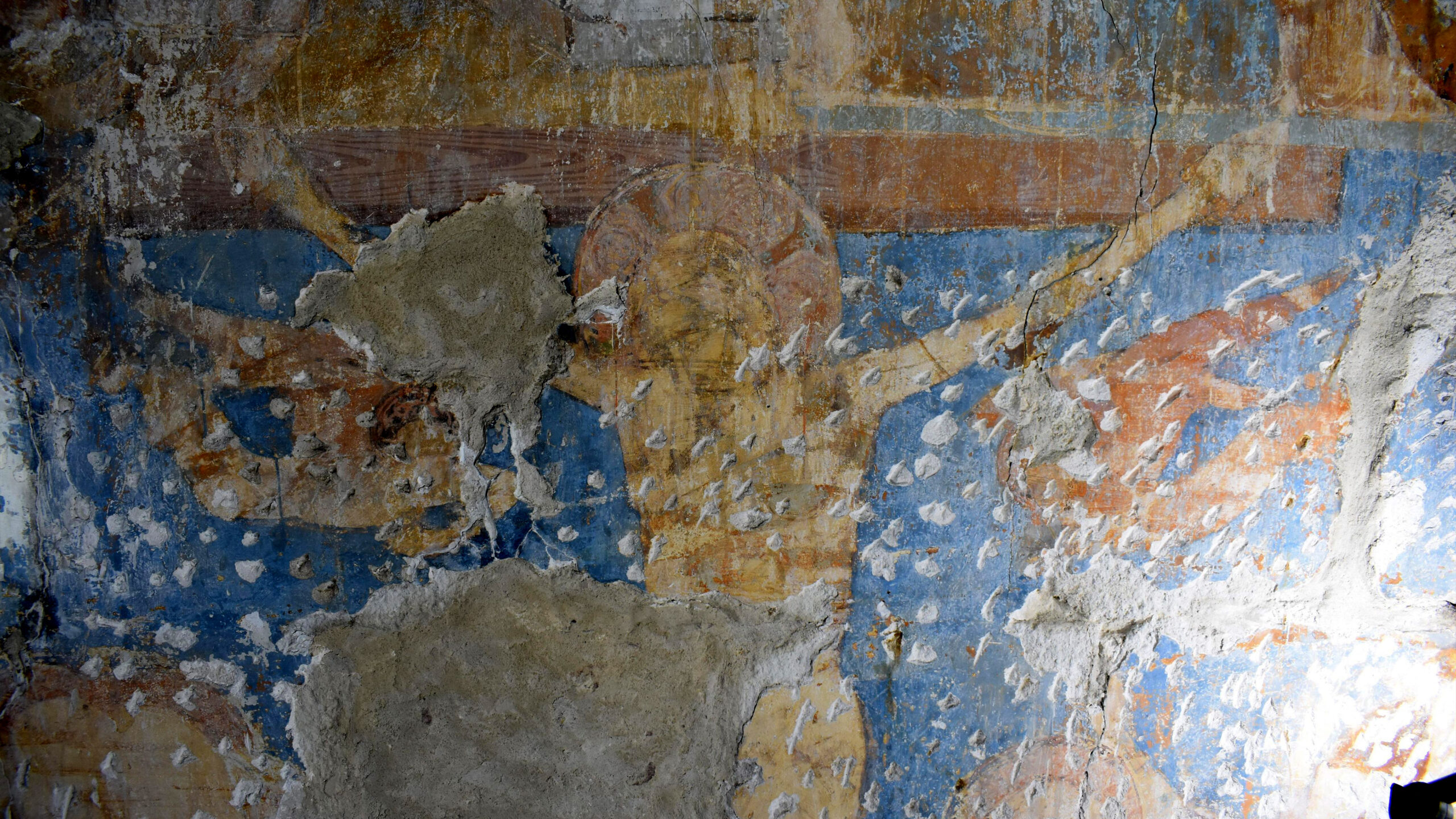Pintura de la Crucifixió d’estil gòtic, trobada al Monestir de Sant Cugat. Font: CRBMC (Ramon Maroto)